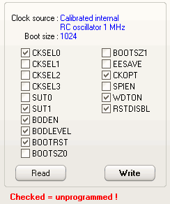 Для PonyProg, AVR Studio, SinaProg галочки ставятся инверсно.